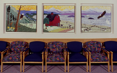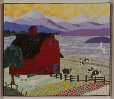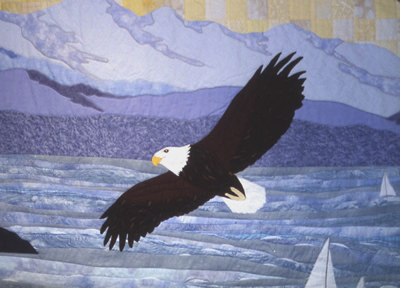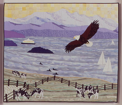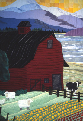 View Left Pane | View Eagle | View Middle Panel View Barn | View Right Panel | View Soaring Eagle View Cows in the Field | View this quilt as installed